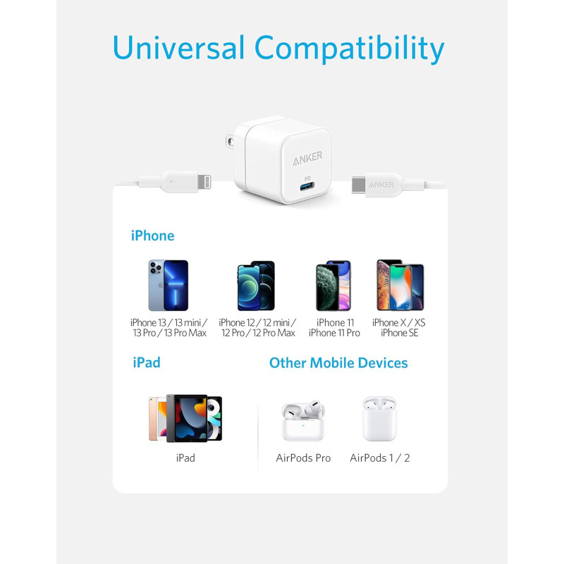 Anker USB C Fast Charger 20W Cube with Cable