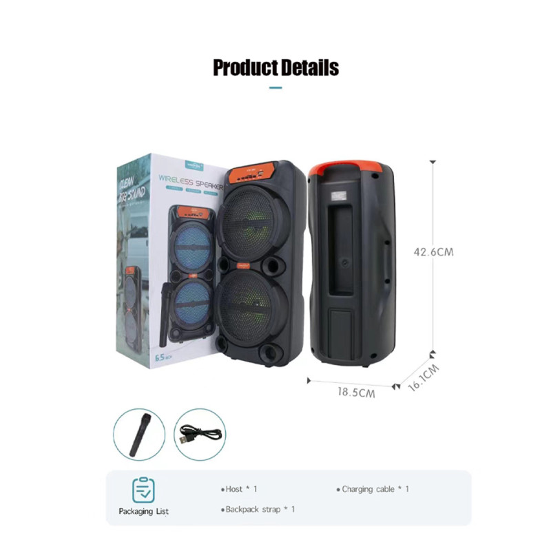 The Greatnice GTS 1880 is a powerful portable wireless speaker designed for ultimate entertainment. Featuring dual 6.5-inch woofers with deep subwoofer bass, this speaker is perfect for home theater use, parties, karaoke nights, and outdoor events. With its wireless connectivity, you can stream music effortlessly from your phone, tablet, or Bluetooth device.